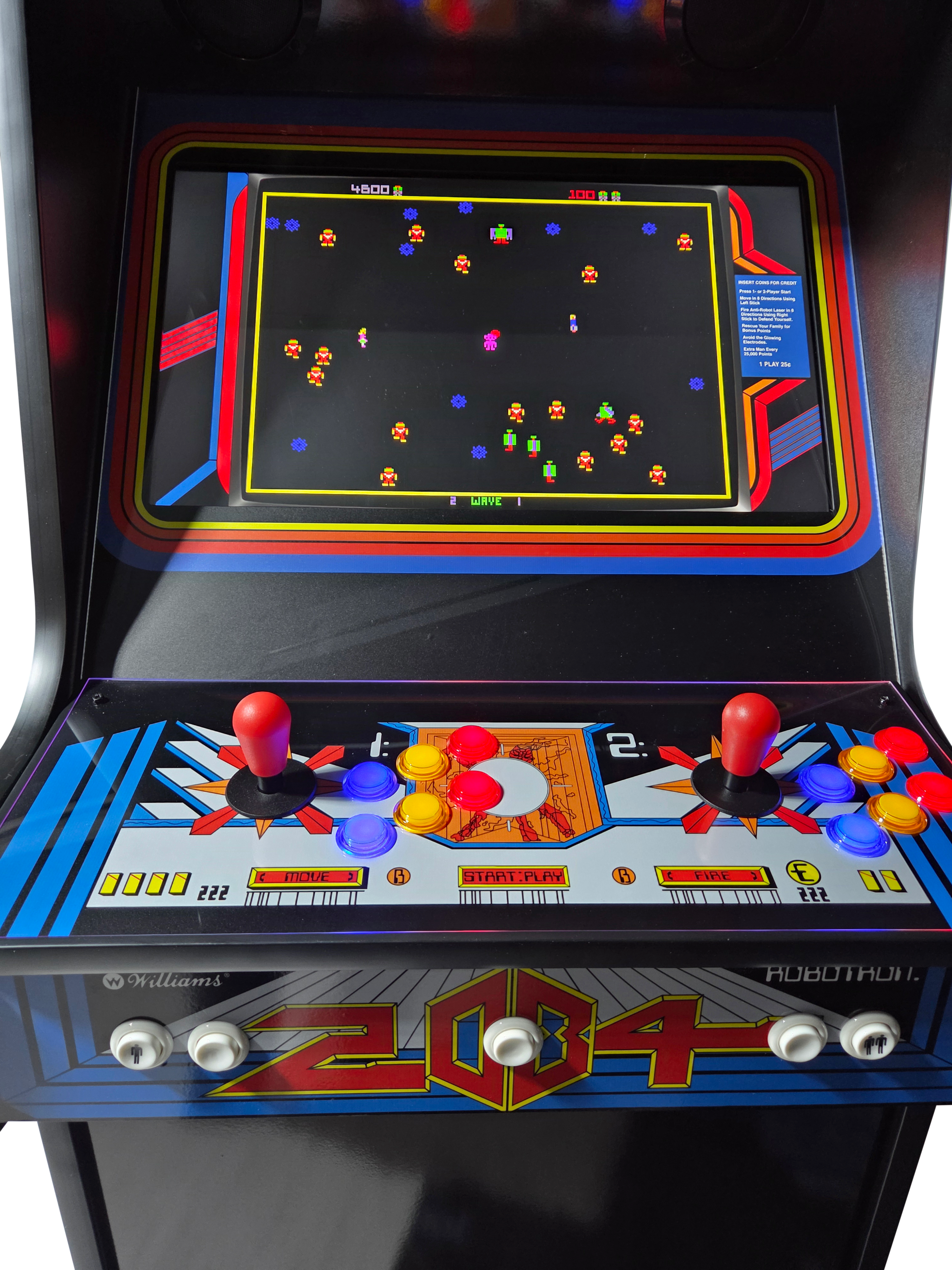 Robotron Arcade Machine for sale - custom build, loaded with 15,000 games in a premium quality Multi-game Arcade build. Full size Robotron arcade machine for 2 players.